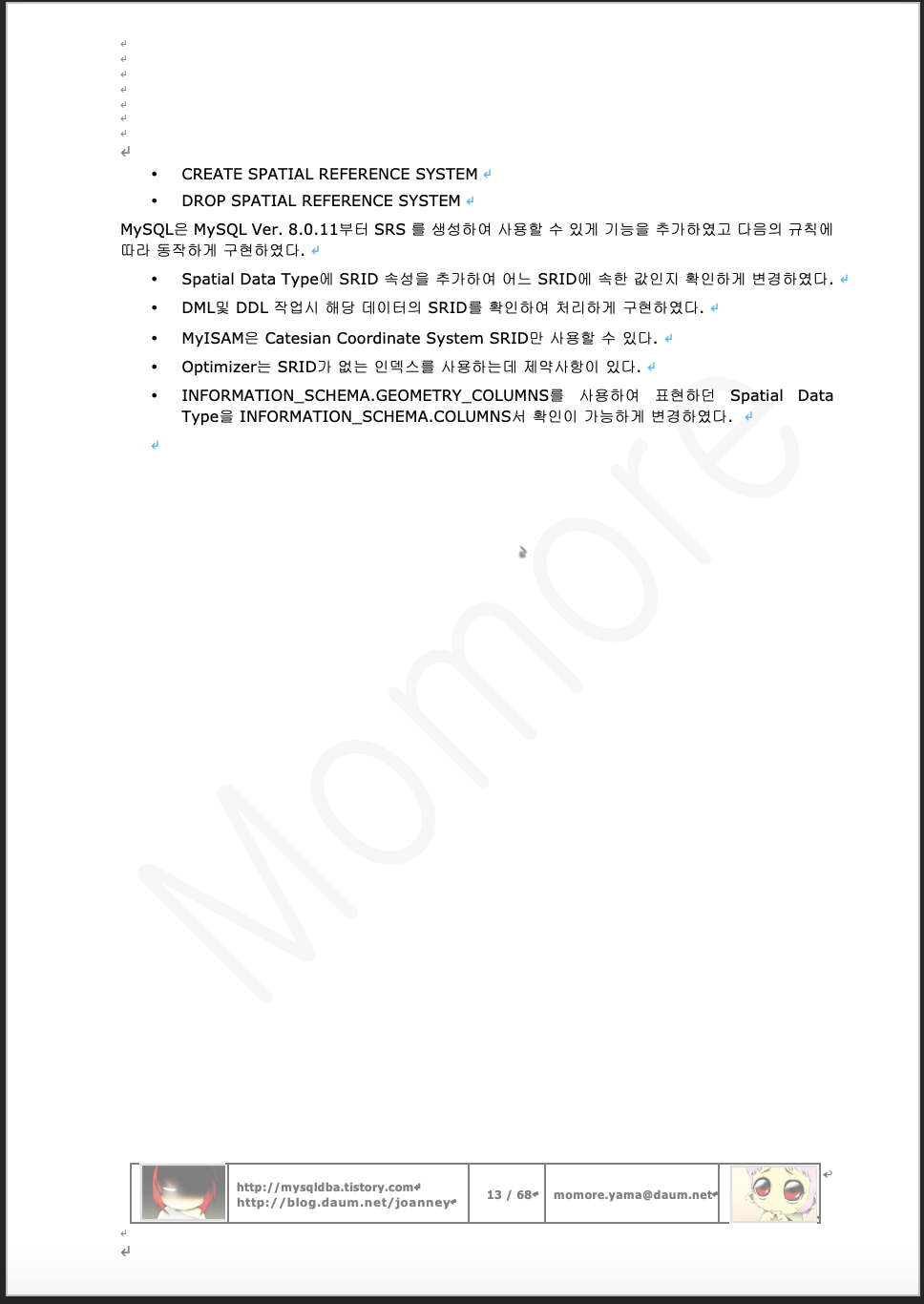 | MySQL Ver. 8.0 Spatial Data (4) (0) | 2019.04.14 |