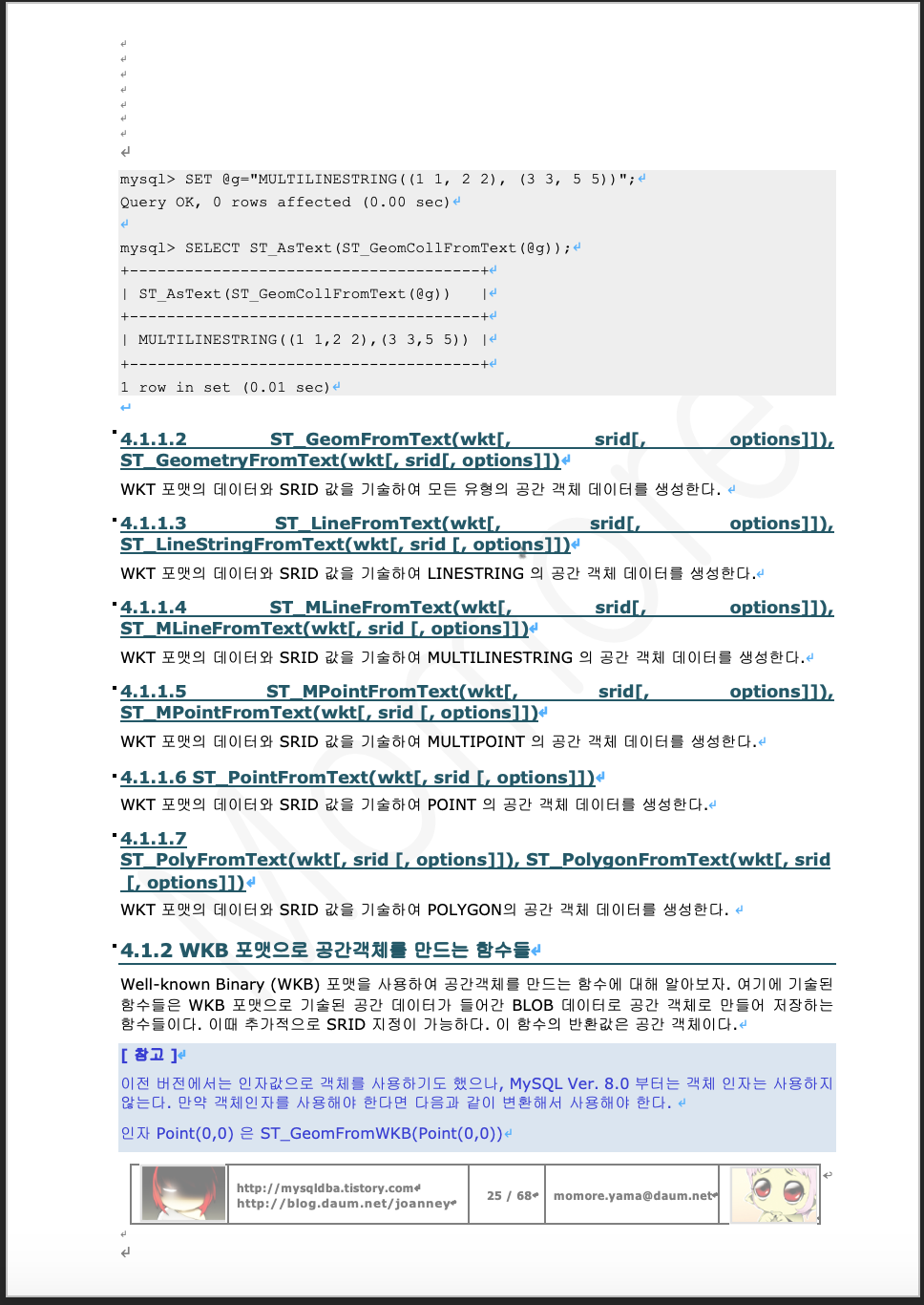 | MySQL Ver. 8.0 Spatial Data (5) (0) | 2019.04.14 |