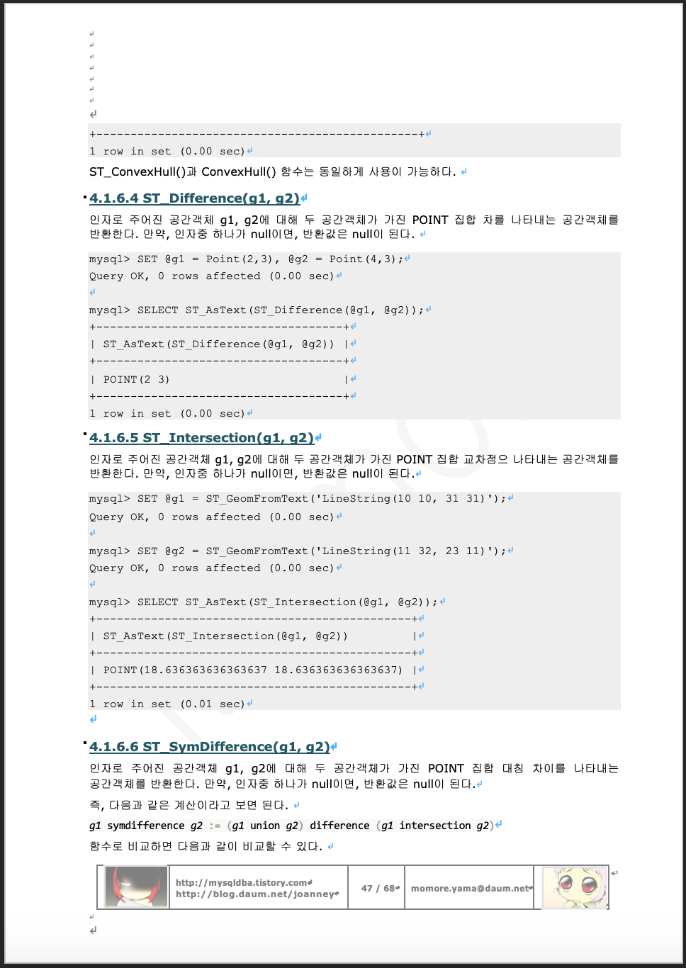 | MySQL Ver. 8.0 Spatial Data (5) (0) | 2019.04.14 |